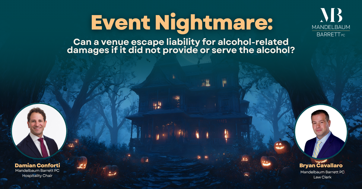 By: Damian Conforti and Bryan Cavallaro When a venue both hosts an event and serves alcohol, exposure to liability under several states’ “Dram Shop” laws is relatively straightforward. The... Read More > -