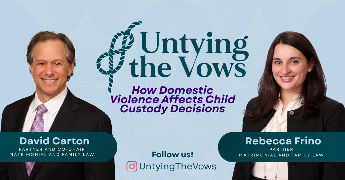 Mandelbaum Barrett PC Partners David Carton and Rebecca Freno, experienced New Jersey family law attorneys, understand the complex realities families face when domestic violence and child custody... Read More > -