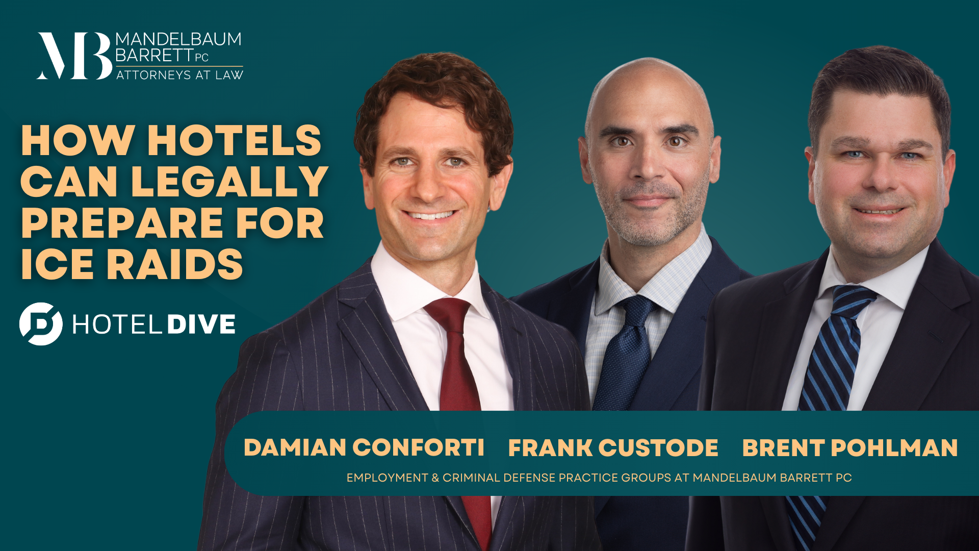 Damian Conforti, Brent Pohlman, and Frank Custode from our Employment and Criminal Defense Practice Groups, were featured in a Hotel Dive article titled “How Hotels Can Prepare for ICE Raids,”... Read More > -