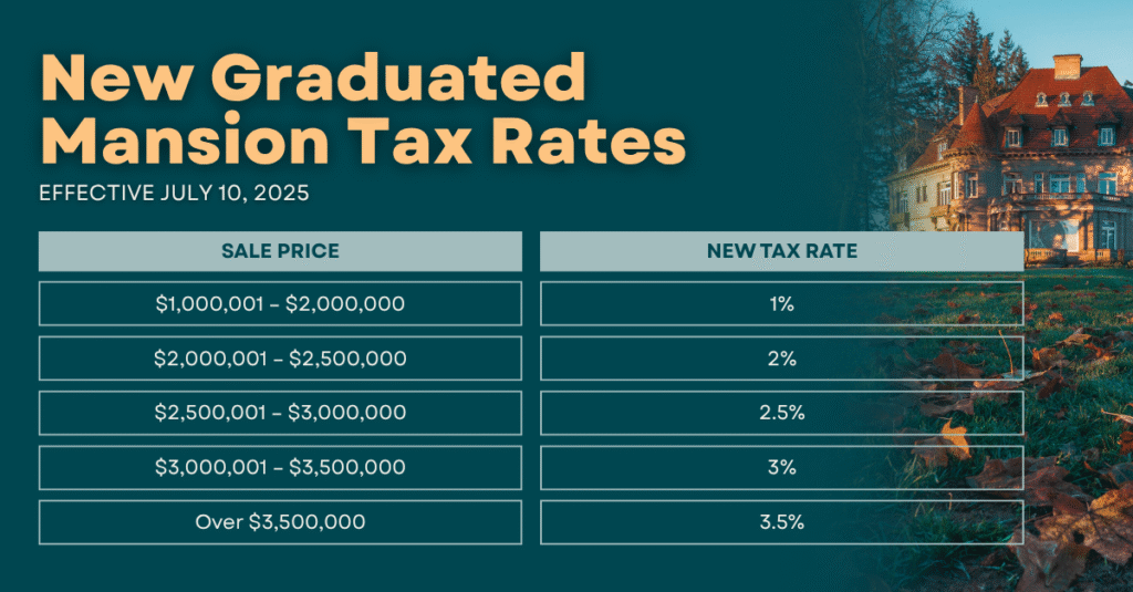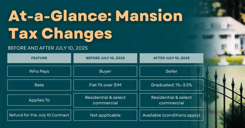 Historically, New Jersey’s mansion tax was a 1% fee paid by the buyer on residential or certain commercial property sales over $1 million. But that all changes in mid-2025, when a new graduated rate structure takes effect—and the seller becomes responsible for paying it.