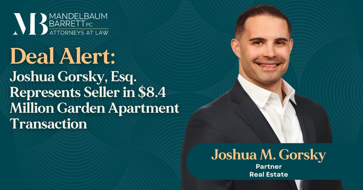 Upcoming Event Alert! Joshua Gorsky, Esq., Real Estate Partner at Mandelbaum Barrett PC, will co-present with Patrick Deyhle, Esq. at the New Jersey State Bar Association‘s “Solving Problems in Commercial Real Estate Transactions” CLE program on July 18th. Their session, “Solving Financing Issues: Traditional and Non-Traditional Financing,” starts at 1pm. If you work in commercial […]