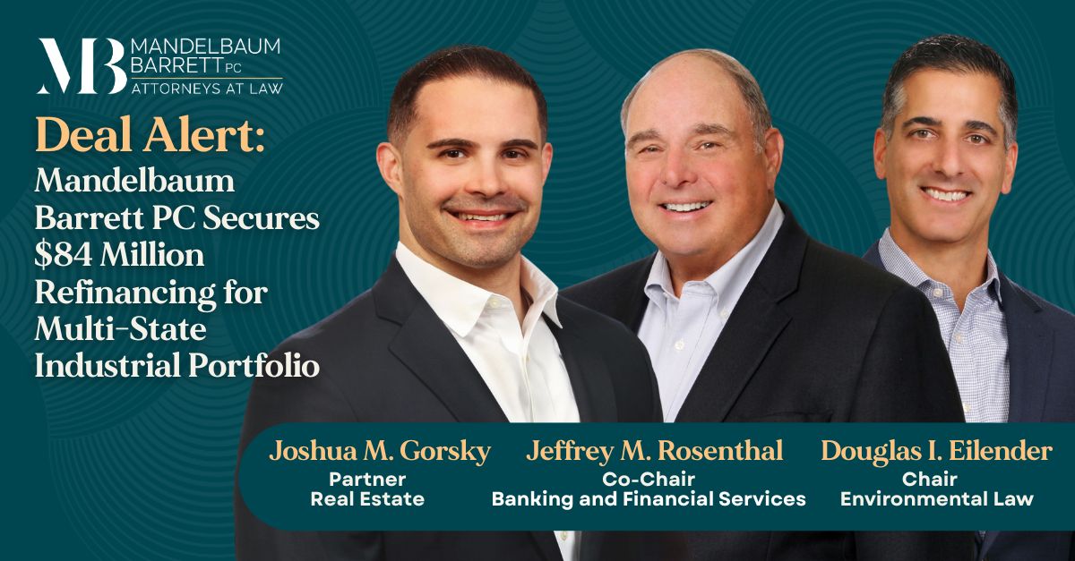 Deal Alert: Mandelbaum Barrett PC Real Estate Partner Joshua Gorsky, Esq. recently represented a regional bank in the financing of the purchase of an industrial property in Chesapeake, VA.