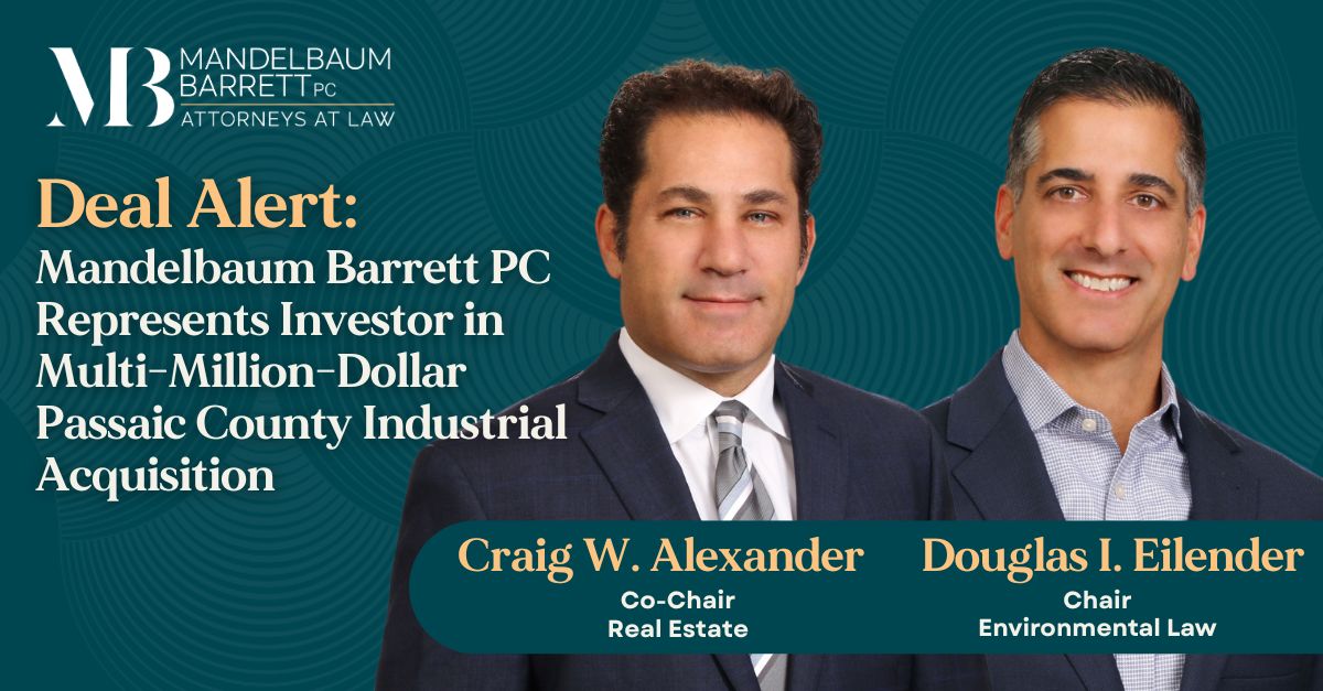 Mandelbaum Barrett PC Real Estate Co-Chair Craig W. Alexander, Esq. represented a real estate investor in connection with the multi-million dollar acquisition of an industrial complex in Warren County, New Jersey. Because of the recent increase in interest rates, Craig assisted in structuring the deal with a combination of 1031 proceeds and seller financing. Learn more about […]